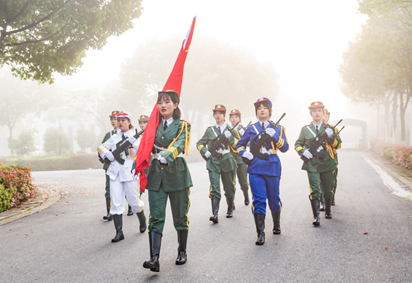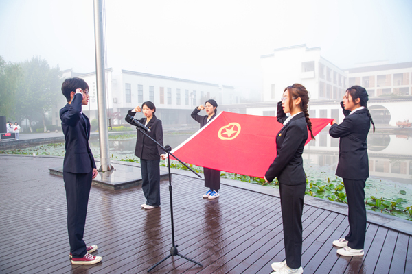 “独立寒秋,湘江北去,橘子洲头。”千名青年大学生在国旗下迎着朝阳诵读了毛泽东诗词《沁园春·长沙》,在朗诵中追溯党的历史伟业,重温红色经典。该词通过对长沙秋景的描绘和对青年时代革命斗争生活的回忆,抒写出革命青年对国家命运的感慨和以天下为己任,蔑视反动统治者,改造旧中国的豪情壮志。来自19茶树栽培与茶叶加工班姚光烨同学说到,“恰同学少年,风华正茂;书生意气,挥斥方遒。我们也许没有英雄那样的史诗气魄,但也不缺乏初生牛犊的赤子之心,我们为自己的人生奋斗就是为社会做贡献,作为一名入党积极分子,我会紧紧抓住时代机遇,乘风破浪、扬帆起航,让青春在不懈奋斗中绽放绚丽之花。”