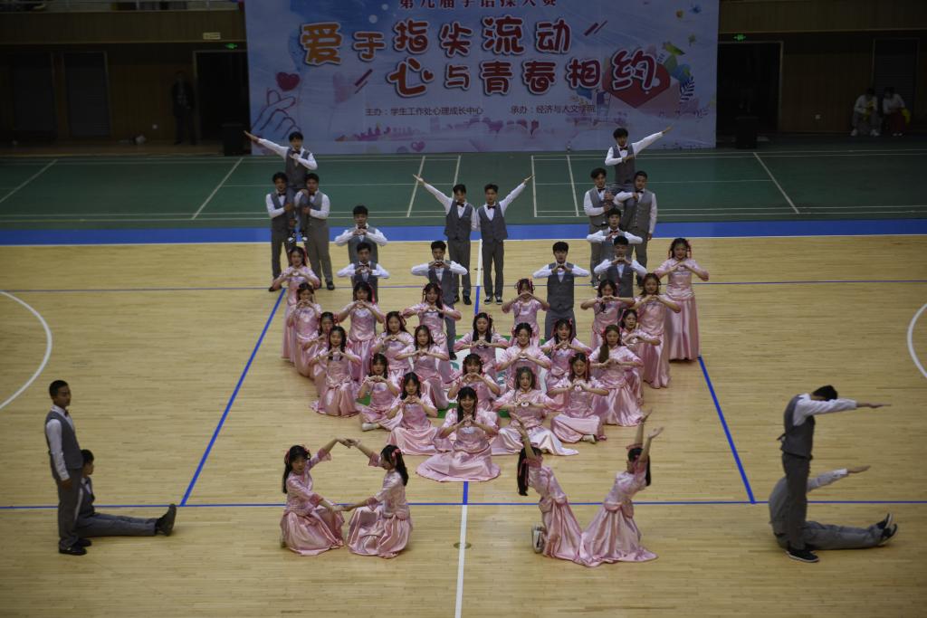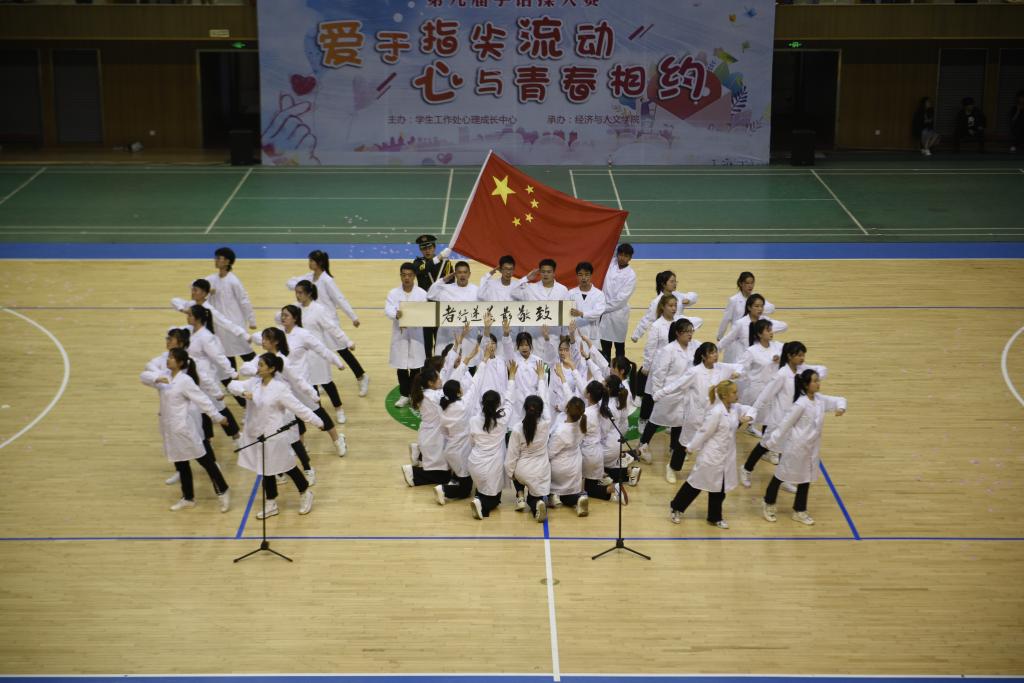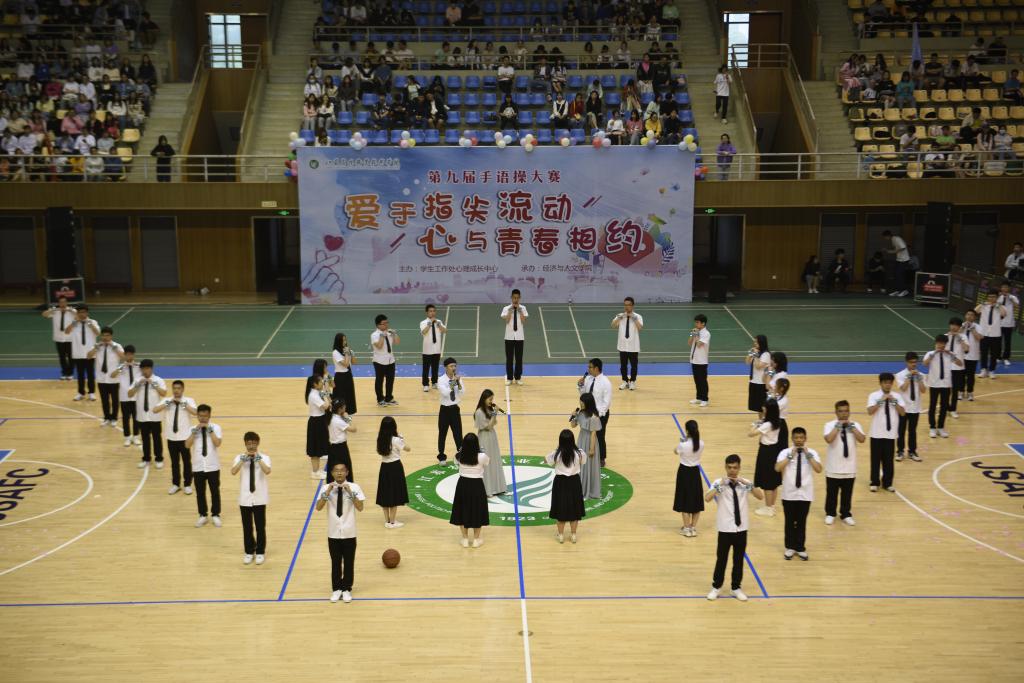 5月12日下午,第九届“爱于指尖流动 心与青春相约”手语操大赛在体育馆成功举办。比赛由学工处心理成长中心主办、经济与人文学院承办。
