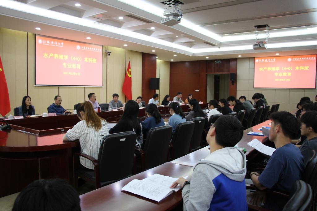5月12日下午,江苏海洋大学海洋科学与水产学院党委副书记、副院长董志国一行来访永利官网,对2020级水产养殖学(4+0)本科班进行专业教育。畜牧兽医学院相关负责人参加了接待活动。