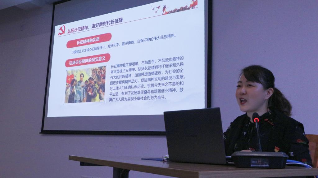 课上,董慧以“长征精神”为题,从长征的背景原因、历史回顾、长征胜利的伟大意义、总书记谈长征精神、弘扬长征精神 走好新时代长征路等5个方面,详细的阐述了长征精神的实质和弘扬长征精神的现实意义。二级学院(校区)团委书记分别以“中国共产党党章的历史沿革”“与‘信仰’对话”“红船再出发”“青春在奋斗中闪光”“中国共产党为什么能”“光辉的历史”“学党史,颂党恩,跟党走”“学党史、悟思想、明职责、担使命”等,为同学们带来丰富多彩的主题团课。