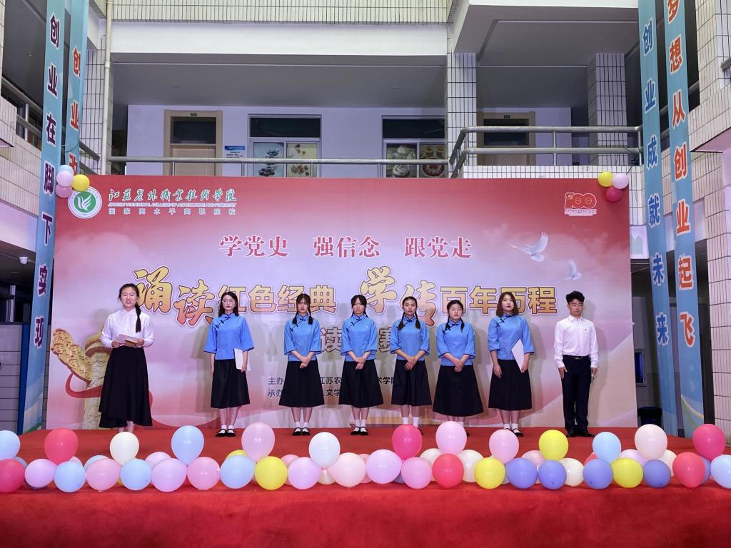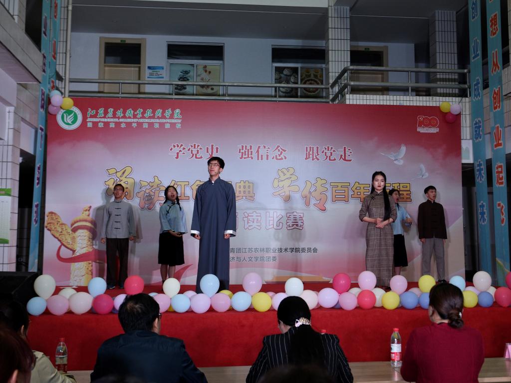 比赛中,8支参赛队伍进行集体诵读,配合演唱、情境再现等形式精彩演绎了《盛世中国》《党旗颂》《吹号者》《党的赞歌》《红色家书》《永不消逝的声音》《中国红》《赤胆夏明翰—-丹心永照后来人》等优秀作品,带领大家一起在诵读诗词中缅怀红色峥嵘岁月,品味红色经典盛宴,领略红色文化魅力。通过评委打分,茅山校区代表队获得一等奖,畜牧兽医学院、经济与人文学院代表队获得二等奖,风景园林学院、信息工程学院、农学园艺学院代表队获得三等奖。