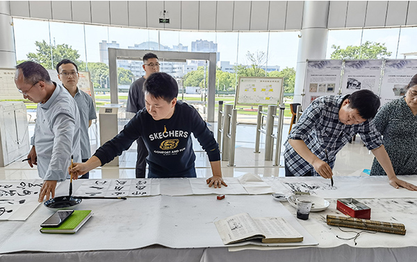 最是“墨”香能致远,振奋精神诗书画。5月22日,由图书馆、团委和工会联合举办的“书写红色经典、传承传统文化书法比赛、展览暨爱好者笔会”等活动在图书馆举办。学院工会主席江德明、图书馆馆长张田林,句容市文联主席傅丽莉,句容市二十余名书画名家及永利官网书画爱好者参加了活动。