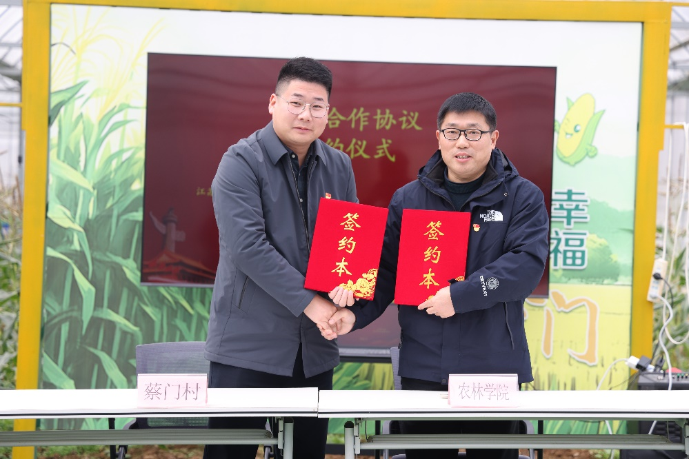 签约仪式上,畜牧兽医学院党总支副书记、院长汪善锋就党建共建的意义、鲜食玉米和羊产业的协同发展等方面作了详细介绍,并实地查看了鲜食玉米种植地和茅西山羊饲养的场所。