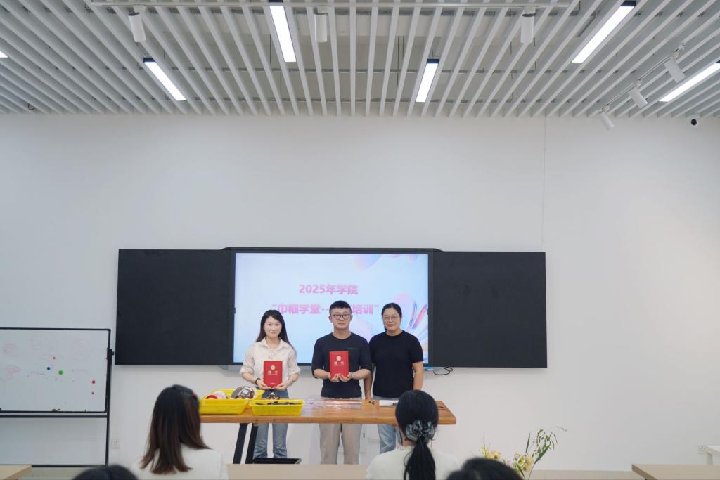 开班仪式上,学院妇联主席杨春梅为培训班指导教师付鹏、邹阳颁发了聘书。