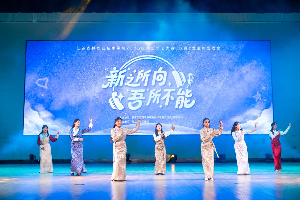 10月15日下午,以“新之所向吾所不能”为主题的2025级新生才艺大赛决赛暨迎新生晚会在学院大学生艺术中心剧场举行。学院党委委员、副院长王瑾出席活动,学生工作处、团委、各二级学院等相关负责老师与现场近千名同学共同观看了演出。晚会由农学园艺学院2024级学生施庆薇与机电工程学院2025级新生黄奕宁联袂主持,现场气氛热烈,掌声不断。