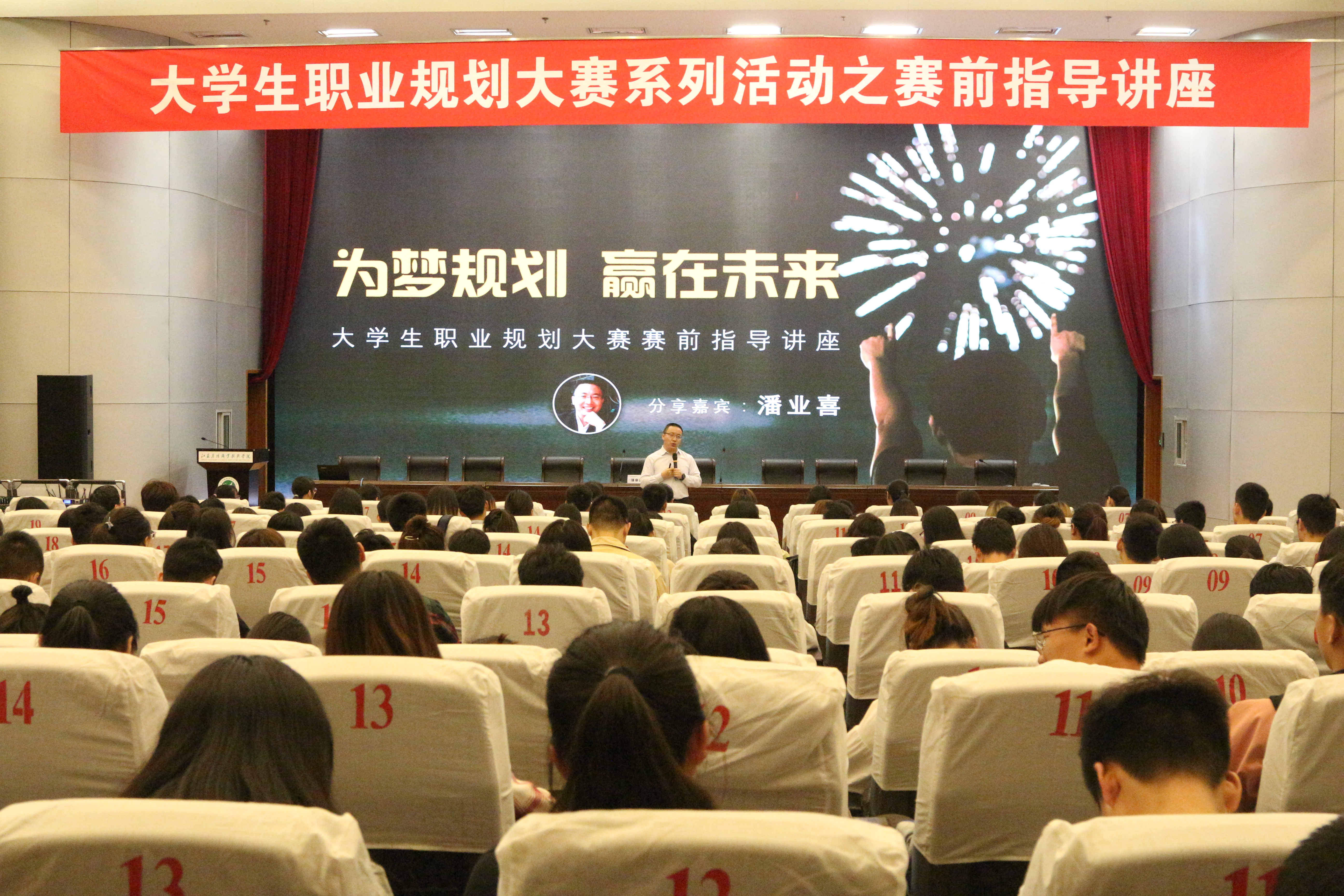 5月15日下午,以“为梦规划 赢在未来”为主题的大学生职业规划大赛系列活动之赛前指导讲座在图书馆报告厅举行。本次讲座邀请了蓝火学院(人才软实力培训)院长、知名生涯导师、省职业生涯大赛评委潘业喜为主讲,300多名学生参加此次活动。