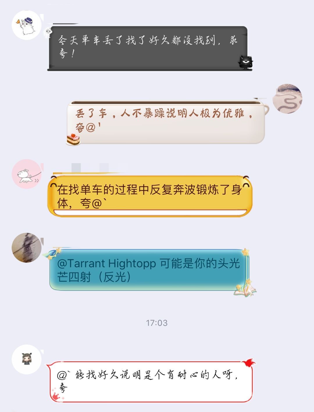 为鼓励大家积极传播正能量,在友好、有爱的氛围中善意地交流,增进同学间的沟通和感情,农学园艺学院心育部于5月4日到5月21日举办“夸”的魔力活动,群成员可以为了各种事情求得他人夸奖,也可以发挥自己的想象力进行“花式夸人”。