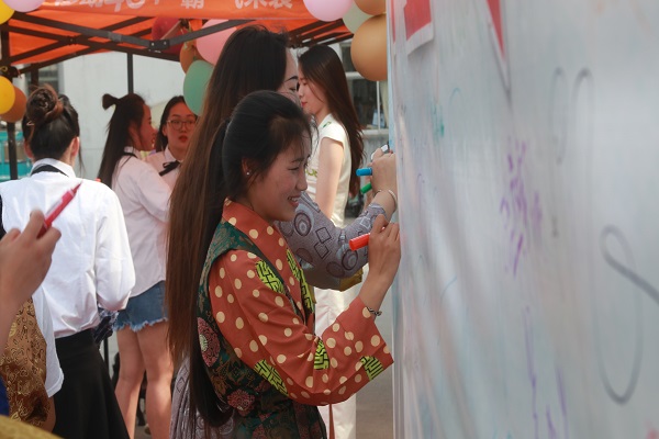 5月24日,伴随着青春欢快的音乐声,红毯签名秀拉开帷幕,毕业生和老师们陆续走过红毯,在签字墙上签下自己的名字。有的老师和毕业生们共同走上红毯,亦师亦友的氛围感染了全场,每个人脸上洋溢着幸福的笑容,尽显牧医学子风采。