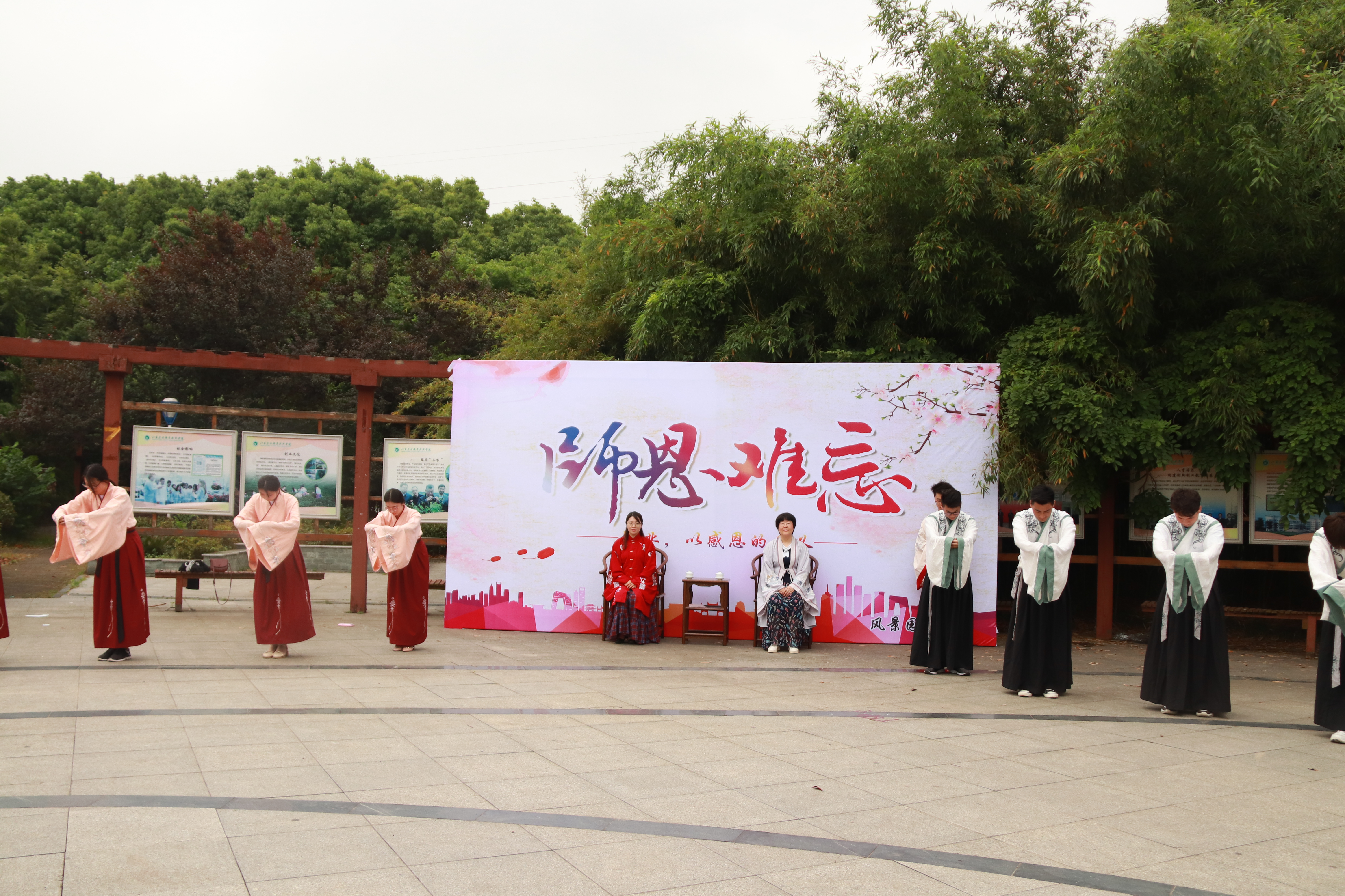 为使得同学们更加懂得感恩,心灵得到温暖,此次活动以特殊的方式为恩师献上最美的赞礼。首先是古典舞“礼仪之邦”表演,博袖舞姿,潇洒飘逸。随后是“谢师礼”,由接受过国家资助、学校资助的同学们身着传统礼服,通过行礼、敬茶、鞠躬、聆训等传统方式,向自己的老师行“谢师礼”,揖让恭敬、庄重肃穆。最后,本次活动在感恩老师的献歌中圆满结束。