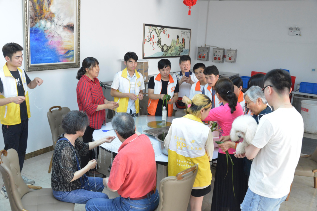 下午2点,志愿者们到逸仙养老院,和老人们一起包粽子,向他们学习裹叶子、填糯米、扎线,随后来到老人们的家,了解老人们的需求、询问老人的身体及生活情况。老人们也亲切地和志愿者们聊起家常,气氛开心愉悦。