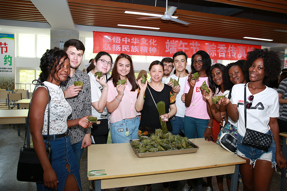 退休老教师手把手教留学生们包粽子,让同学们体会到了包粽子的乐趣。活动中,老教师们一边包粽子一边给留学们讲述中国古代爱国诗人屈原的故事、包粽子的由来、端午节传统习俗等,让留学生们感受到了中国传统节日浓郁的文化气息,感悟到了中国文化的博大精深。活动现场,师生互动,气氛活跃,给大家留下了难忘的印象。