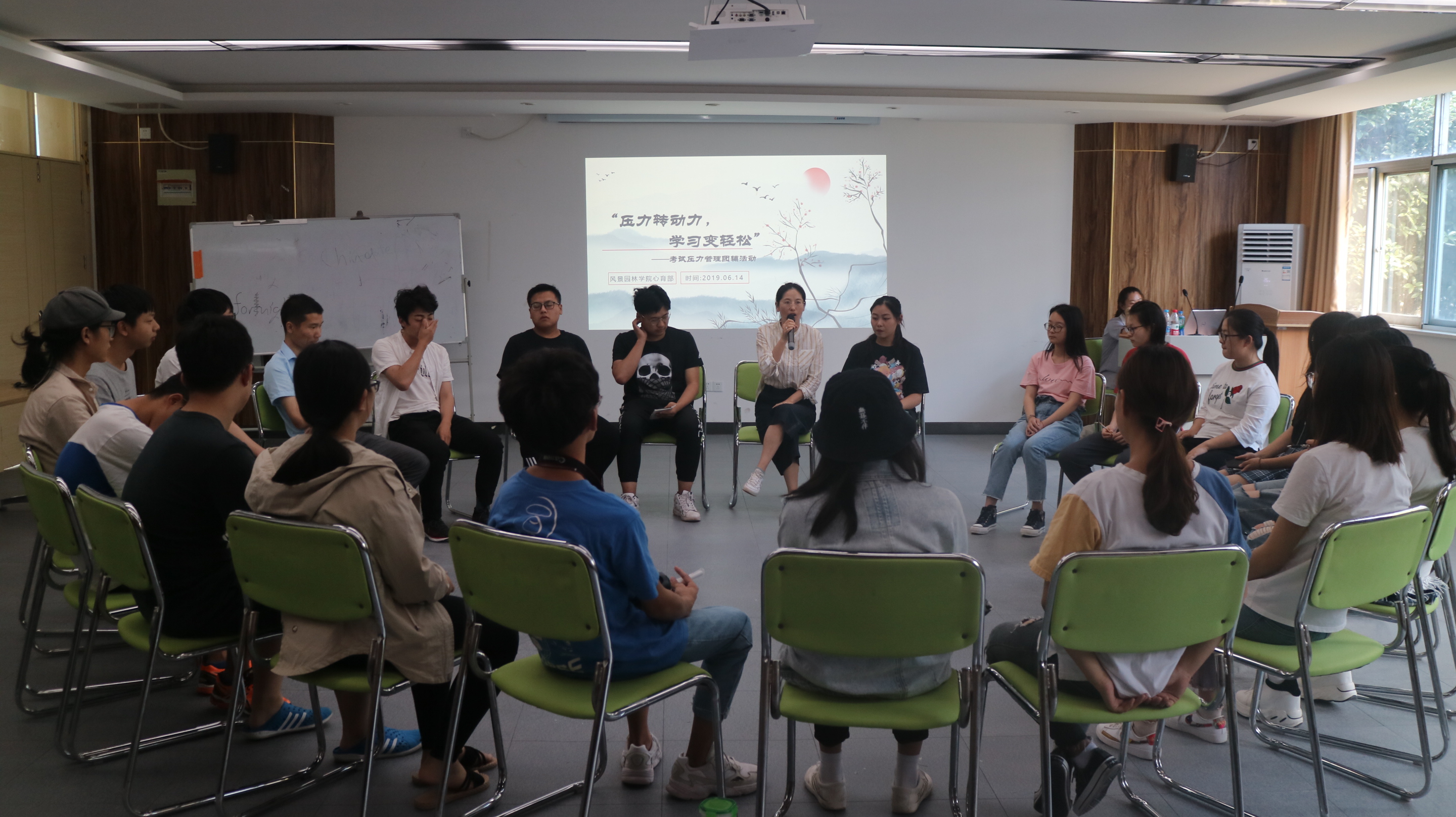为帮助同学们缓解考试压力,调节焦虑情绪。6月14日,风景园林学院心育部在创客空间举办了考试压力管理团辅活动,主要针对争取奖学金、备考转本、考研的同学,共有23名同学自愿报名。