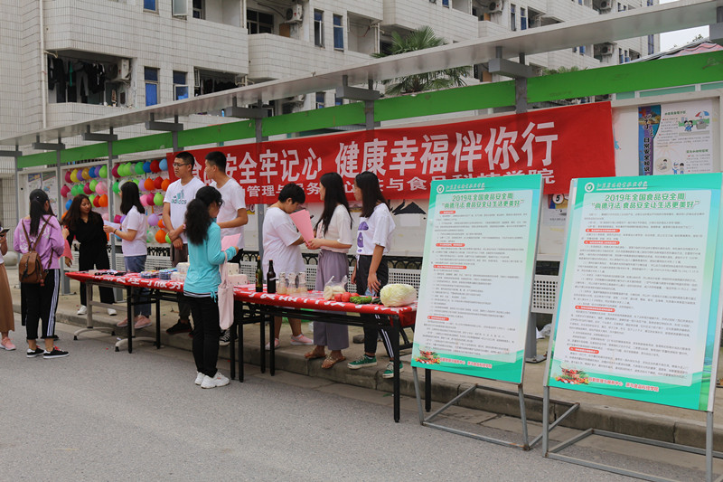 为贯彻落实2019年全国食品安全宣传周活动的有关通知,6月19日-30日,茶与食品科技学院团委联合后勤管理与服务中心在师生食堂门口开展“尚德守法食品安全让生活更美好”食品安全宣传系列活动。