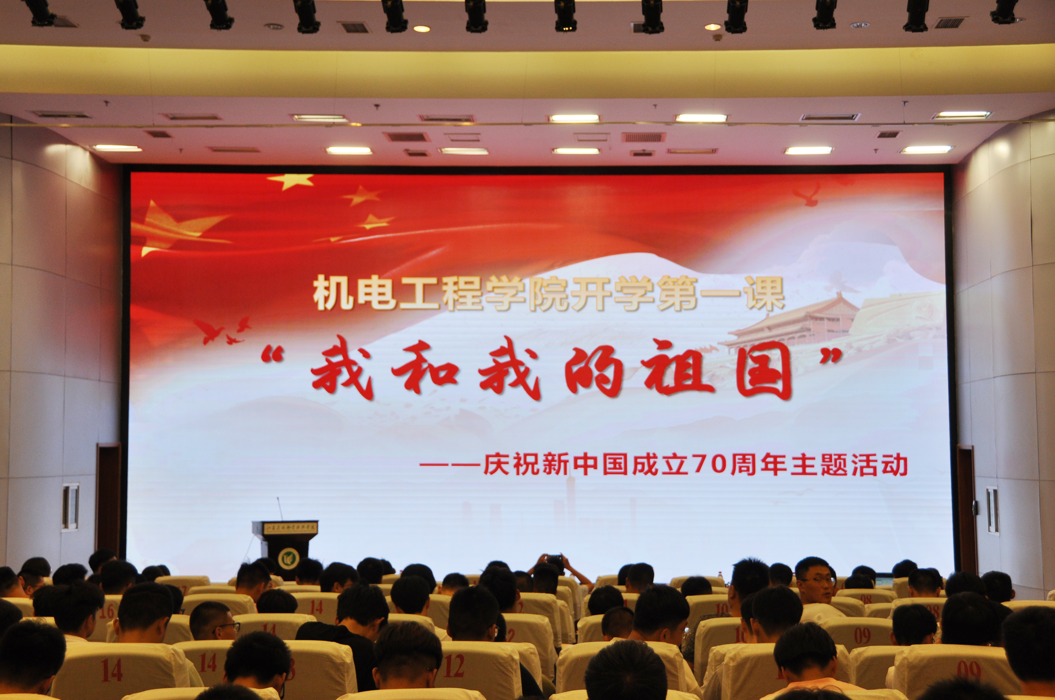 开学第一课是机电工程学院庆祝新中国成立70周年系列教育活动的开端,课程形式多样,内容丰富,中间还穿插了爱国主义视频、诗歌朗诵和情景剧表演,不仅营造了更为浓烈的爱国主义氛围,也让同学们以饱满的热情和良好的状态,投入到新学期的学习和生活之中。