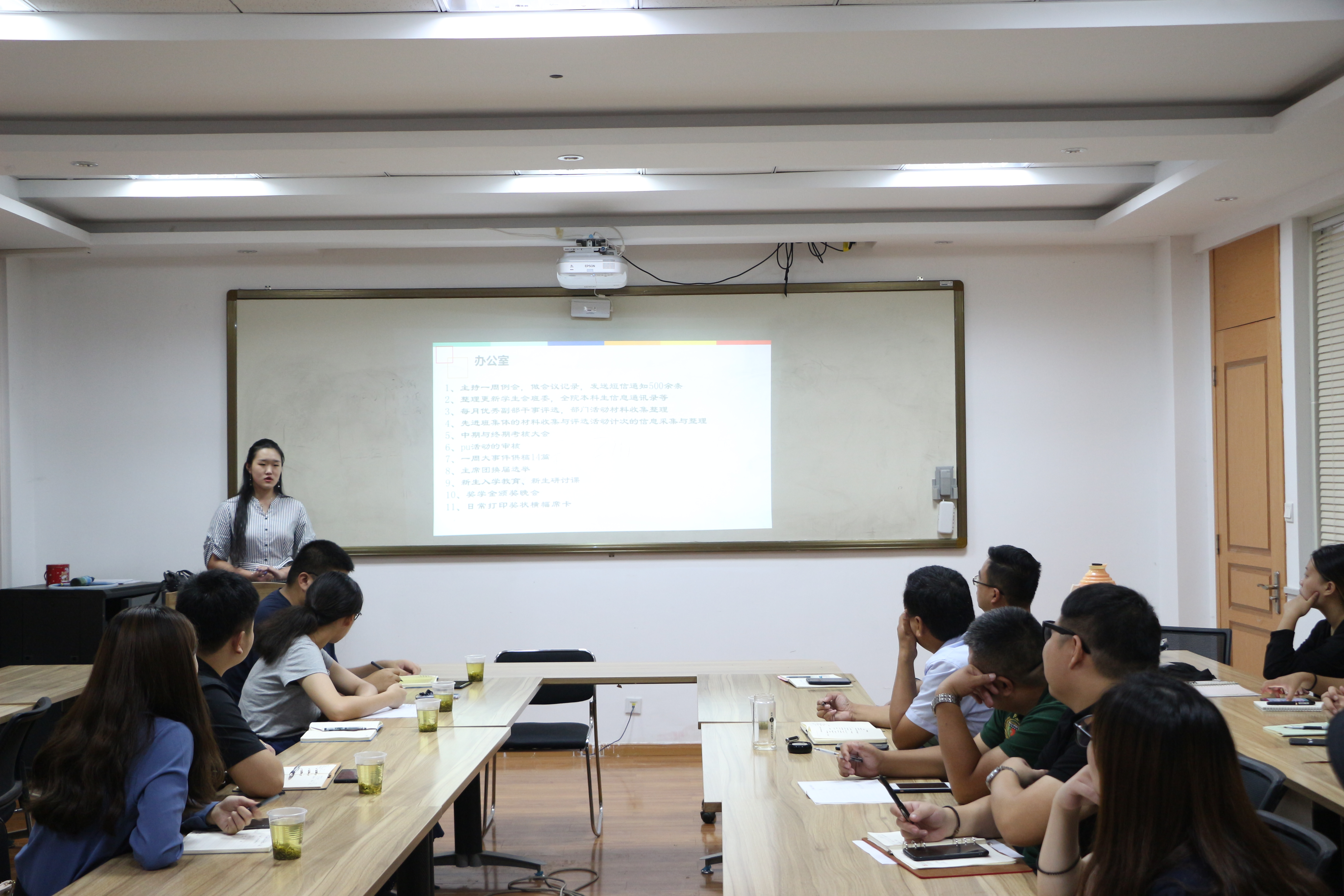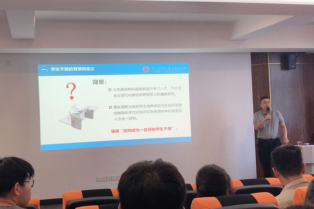 本次培训班主要分三个阶段,第一阶段:团委、学工办老师对学生智慧团建、学生常规管理、奖助贷、心理活动、创新创业等方面开展培训。第二阶段:部分学生干部与南京农业大学动物医学院学生干部学习交流。第三阶段:记者、摄影人徐群老师、南京农业大学动物医学院党委书记周振雷老师,分别就“新闻摄影技巧”、“如何做好一名学生干部”展开培训,其中周老师还以如何做一名学生干部问题切入,与学生们互动交流,帮助学生干部解除疑惑、明确职责、鼓足干劲。