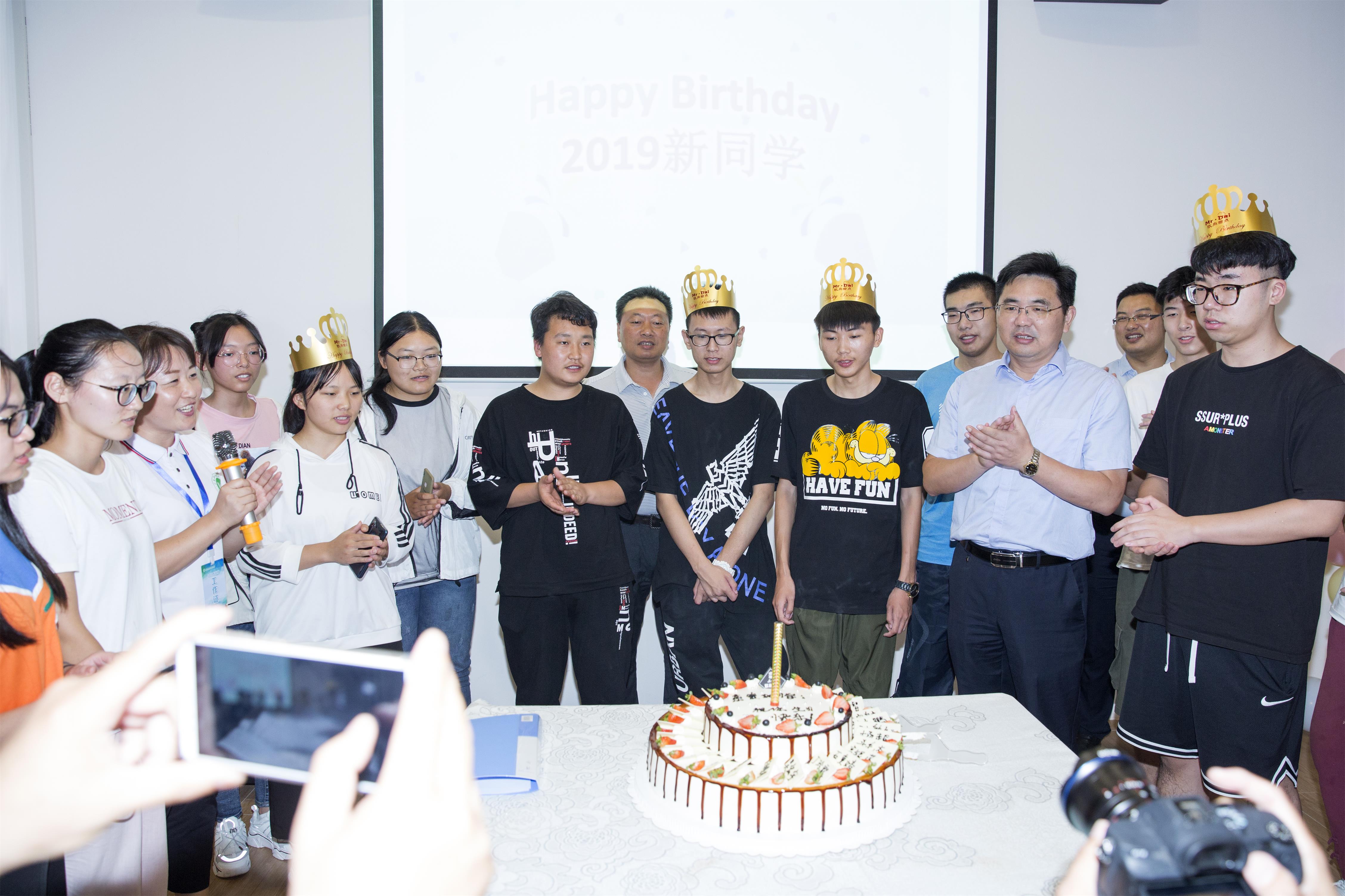 生日恰逢新生开学报到,9月14日下午,永利官网团委为9月14日-15日这两天出生的大一新生举办了“意义非凡”的庆生活动,学院党委委员、副院长曹仁勇,学生工作处、茅山管委会、团委、二级学院(校区)分团委等相关负责人出席了活动,已报到的14位新生及家长参加了本次生日会。