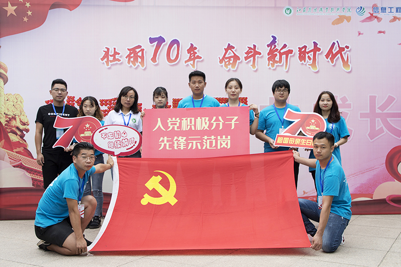 信息工程学院组织开展了“2019级新生报到‘第一课’—我和祖国共成长”活动。党员老师引导新生报到将自己的爱国心贴在“成长墙”上,开展新生报到“第一课”,学院学生入党积极分子则组成志愿服务先锋岗热情洋溢地奔赴各个报到点引领新生和家长。在“未来可期”留言墙上,新生写上自己的展望,考研、积极参加实践活动等青春寄语,展开了新生大学生活的宏伟画卷。