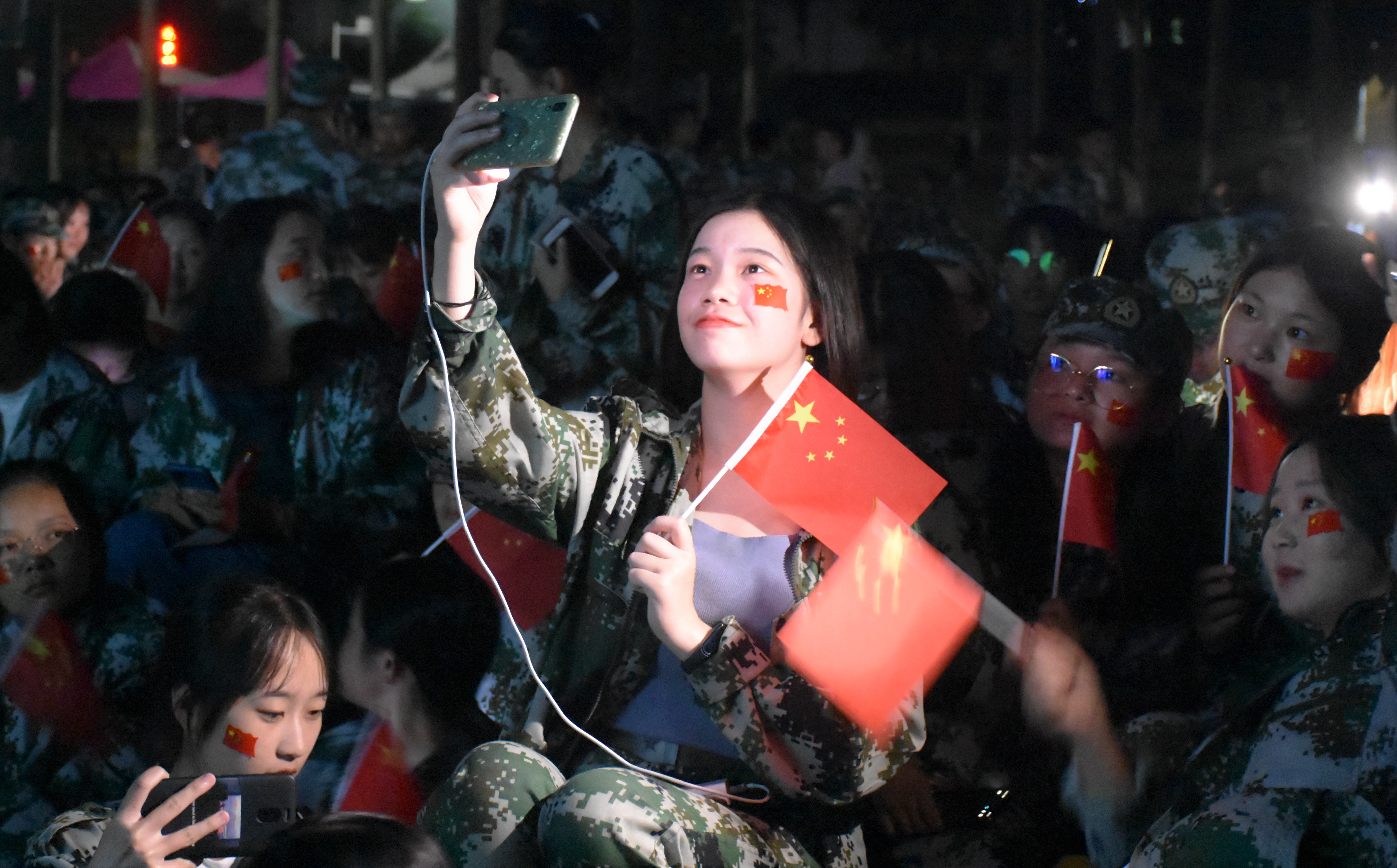展播伊始,到场师生高举国旗,自发齐唱《歌唱祖国》,短暂的开场后进入观影环节。为了取得活动预期效果,承办方发起红色记忆电影展播影评打卡活动,连续四天到场观看并撰写影评发至微信朋友圈者将获精美纪念品和证书一份,这一举措吸引了大批师生到场观看,现场气氛热烈。