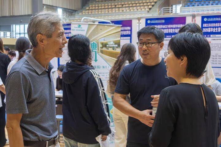 yl7703永利官网党委委员、副校长王瑾亲临现场调研指导,与企业代表围绕人才链与产业链深度融合等议题进行交流,并亲切询问毕业生就业意向与职业规划,鼓励同学们拓宽视野、把握机遇,积极实现高质量就业。
