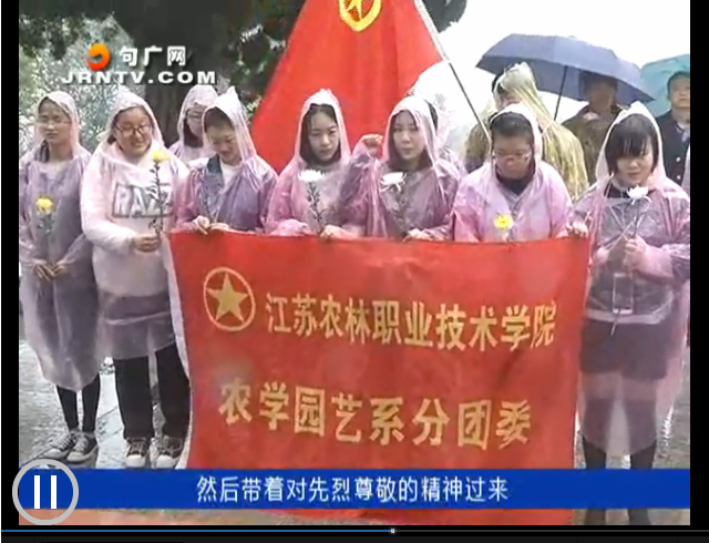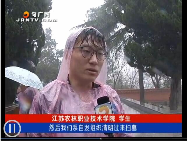 4月2日,在句容市团市委的组织下,农学园艺系师生一行30人前往句容兆文山烈士陵墓举行了清明节祭扫活动。句容电视台报道了此次活动。 链接地址:http://www.jrntv.com/vod/folder150/2016-04-05/42534.html